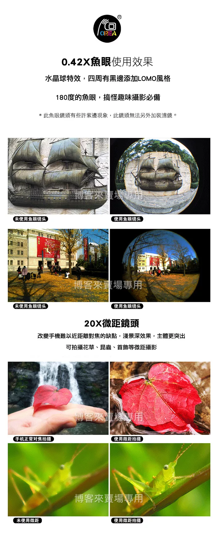 博客來e-coupon OREA 【 0.42X 魚眼+微距鏡頭 SY3 - 37mm 】 手機鏡頭 水晶球 特效 趣味 180度廣角