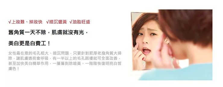 15秒換新角質,絲質肌再現,美白調理,深入緝拿黑色素!